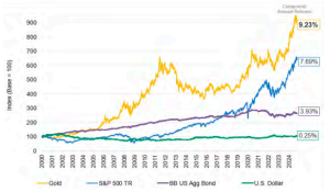 Since the start of this century, gold has outperformed stocks, bonds and the U.S. dollar |
